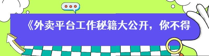 《外卖平台工作秘籍大公开,你不得不看!》 - 哪都达