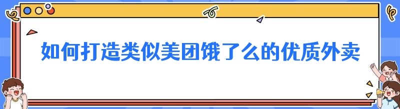 如何打造类似美团饿了么的优质外卖平台