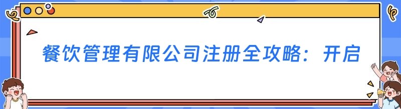 在美食的世界里,每一道佳肴都承载着人们对生活的热爱和对美味的追求。如果你怀揣着创业梦想,想要在餐饮行业大展拳脚,那么注册一家餐饮管理有限公司是至关重要的第一步。这不仅是你合法经营的基础,更是你在市场上树立品牌形象、吸引顾客的关键。那么,餐饮管理有限公司究竟该如何注册呢?接下来,就让我们一起揭开这个神秘的面纱,为你详细解析注册过程中的每一个环节。