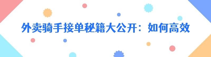在当今竞争激烈的外卖市场中,外卖骑手想要获得更多的订单和收入,不仅需要具备良好的服务态度和配送能力,还需要掌握一些接单技巧。本文将为您详细介绍外卖骑手的接单技巧,帮助您在众多骑手中脱颖而出,赚取更多的收入。
