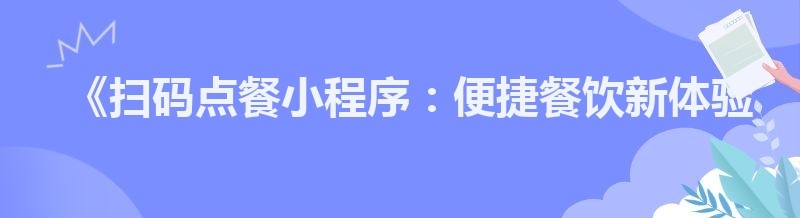 《扫码点餐小程序:便捷餐饮新体验》