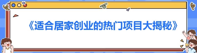 在当今社会,越来越多的人渴望拥有自己的事业,同时又希望能够兼顾家庭。居家创业成为了许多人的理想选择。那么,究竟有哪些适合居家创业的好项目呢?让我们一起来揭开这个神秘的面纱。