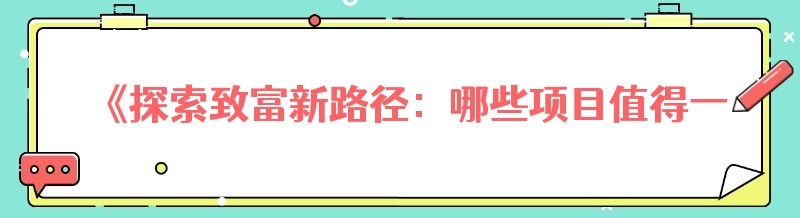 《探索致富新路径:哪些项目值得一试》