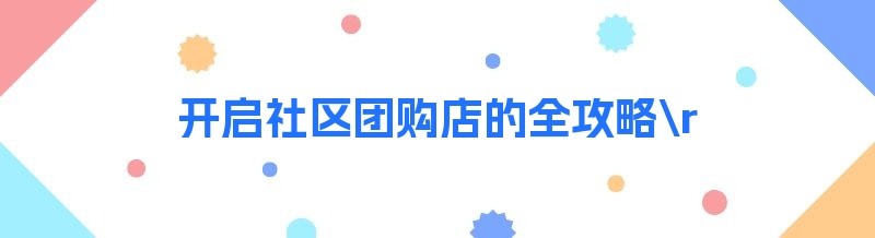 开启社区团购店的全攻略