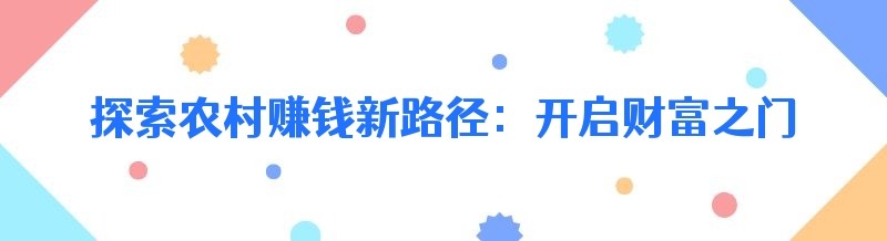 探索农村赚钱新路径:开启财富之门的秘诀
