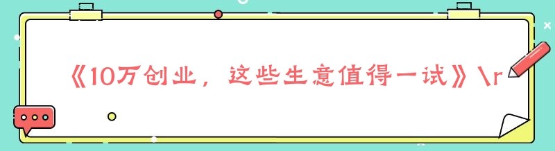 《10万创业,这些生意值得一试》