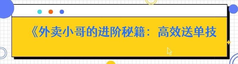 编辑 《外卖小哥的进阶秘籍:高效送单技巧全解析》