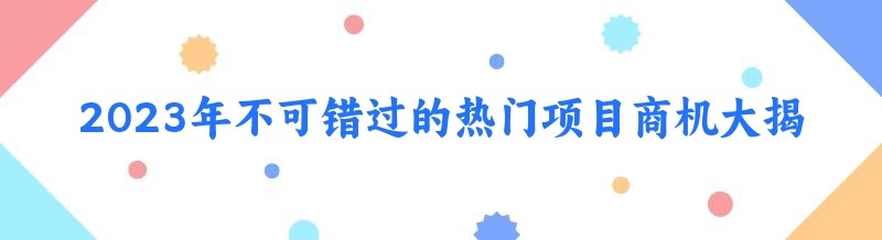 在这个充满机遇与挑战的时代,2023年又有哪些项目商机值得我们去关注和把握呢?让我们一起来揭开它们神秘的面纱。