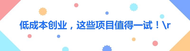 低成本创业,这些项目值得一试!