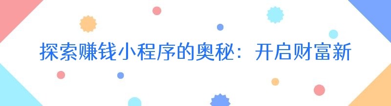 探索赚钱小程序的奥秘:开启财富新通道