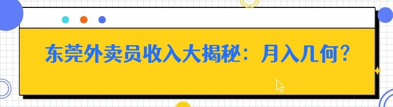 东莞外卖员收入大揭秘:月入几何?