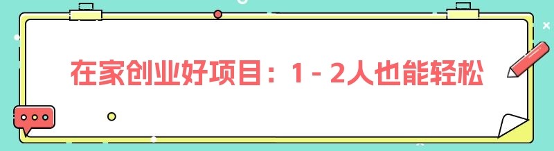 编辑 在家创业好项目:1 - 2人也能轻松起步
