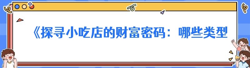 《探寻小吃店的财富密码:哪些类型更赚钱》