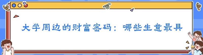 大学周边一直是商业的热门之地,这里汇聚了大量充满活力和消费需求的学生群体。对于创业者来说,如何在这片竞争激烈的市场中找到最赚钱的生意,是一个值得深入探讨的问题。本文将为您剖析大学周边的各种商业机会,帮助您找到开启财富之门的钥匙。
