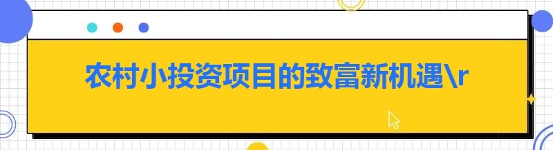 农村小投资项目的致富新机遇