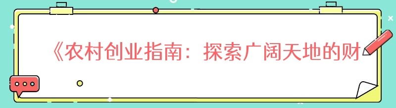 在城市的喧嚣与繁华背后,农村这片广袤的土地正逐渐成为创业的新热土。随着国家对农村发展的重视和扶持力度不断加大,农村创业迎来了前所未有的机遇。那么,农村究竟该如何创业呢?这是许多有志于在农村闯出一片天地的人所关心的问题。本文将为您详细介绍农村创业的多种途径和注意事项,帮助您开启农村创业的成功之旅。