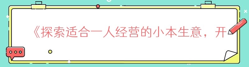 《探索适合一人经营的小本生意,开启创业新征程》