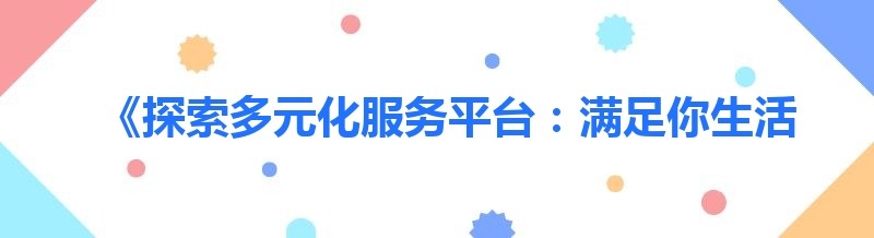 《探索多元化服务平台:满足你生活中的各种需求》