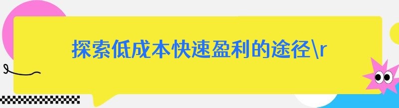 探索低成本快速盈利的途径