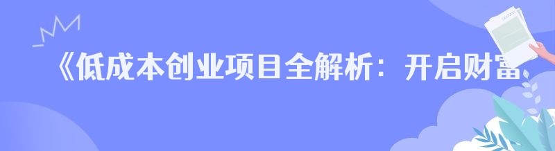《低成本创业项目全解析:开启财富之路的新选择》