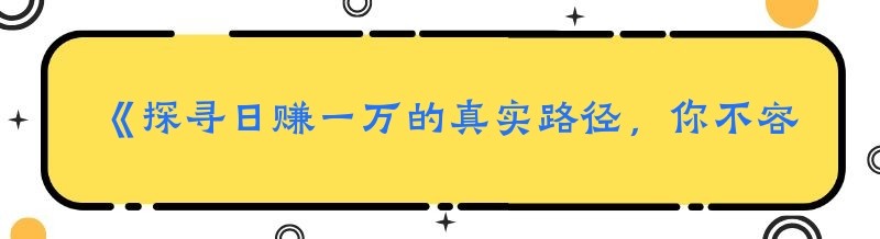 《探寻日赚一万的真实路径,你不容错过!》