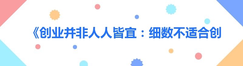 《创业并非人人皆宜:细数不适合创业的八种类型》