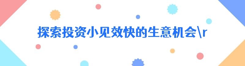 探索投资小见效快的生意机会