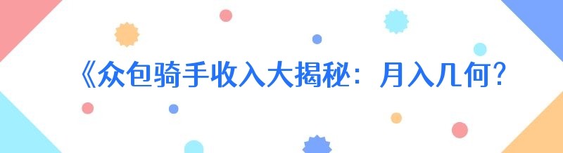 编辑 《众包骑手收入大揭秘:月入几何?》