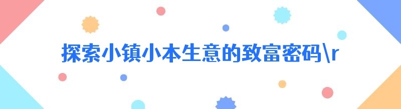 编辑 探索小镇小本生意的致富密码