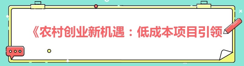 《农村创业新机遇:低成本项目引领致富路》