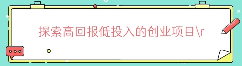探索高回报低投入的创业项目