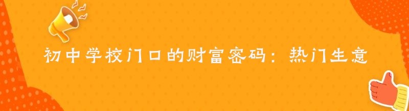 初中学校门口的热门生意有很多,创业者们可以根据自己的兴趣爱好、资金实力和市场需求来选择适合自己的生意。同时,也要注意店铺的经营管理,提高服务质量和产品质量,不断满足学生们的需求,才能在激烈的市场竞争中立于不败之地。