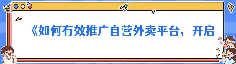 《如何有效推广自营外卖平台,开启成功创业之路》