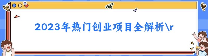 2023年热门创业项目全解析