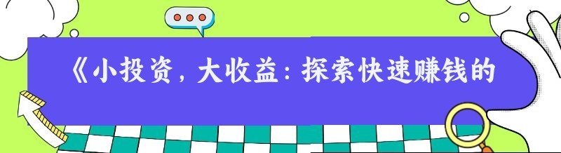 在当今社会,许多人都渴望能够快速赚钱,同时又希望投资少一些,风险小一些。那么,有没有这样的赚钱途径呢?答案是肯定的!以下是一些投资少且赚钱快的方法,希望能给你带来启发。