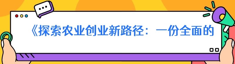 《探索农业创业新路径:一份全面的项目计划书》