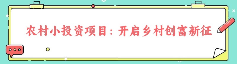 农村小投资项目:开启乡村创富新征程