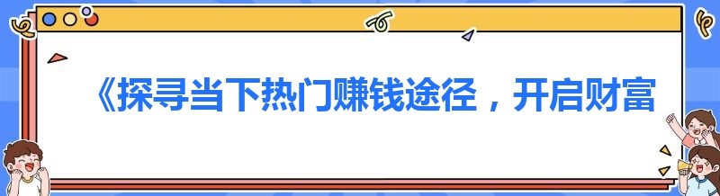 《探寻当下热门赚钱途径,开启财富增长之旅》