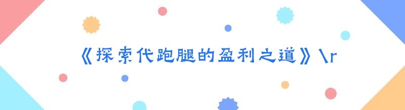 《探索代跑腿的盈利之道》