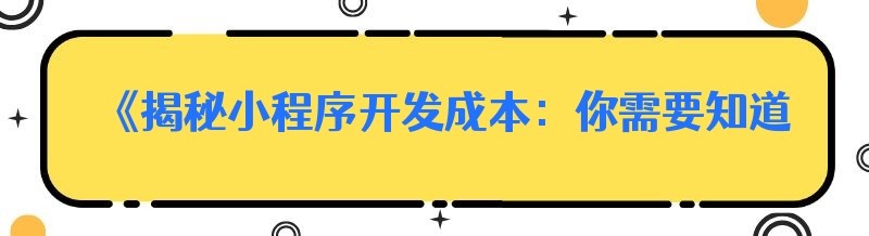 《揭秘小程序开发成本:你需要知道的那些事儿》
