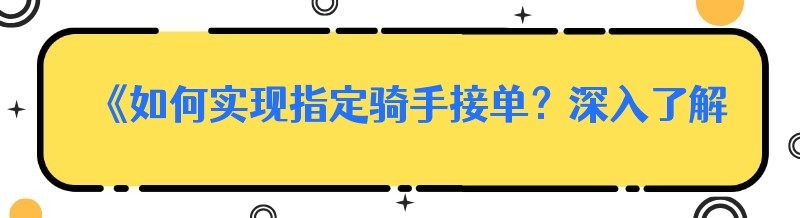 在当今竞争激烈的外卖跑腿市场中,对于一些特殊情况或特定需求,商家或用户可能希望能够指定某个骑手来接单。那么,这一目标究竟该如何实现呢?