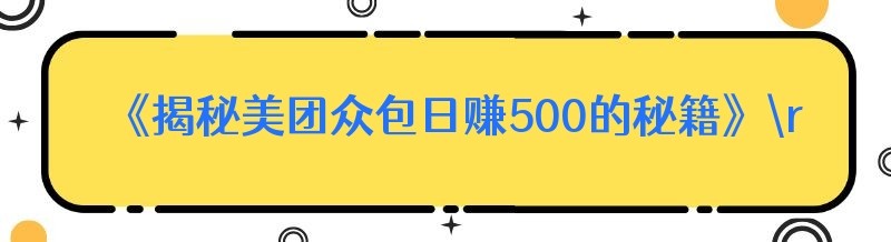 《揭秘美团众包日赚500的秘籍》