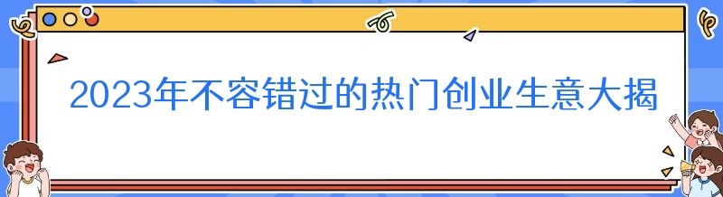 2023年不容错过的热门创业生意大揭秘