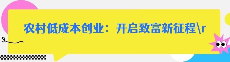 农村低成本创业:开启致富新征程