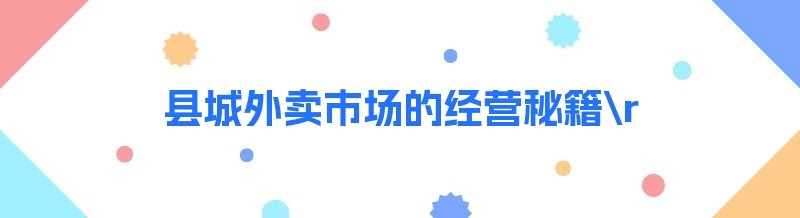 县城外卖市场的经营秘籍