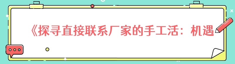 《探寻直接联系厂家的手工活:机遇与挑战并存》