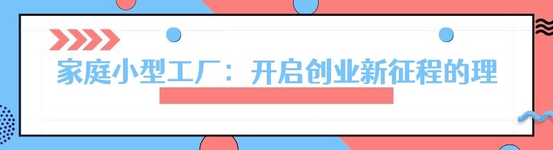家庭小型工厂:开启创业新征程的理想之选