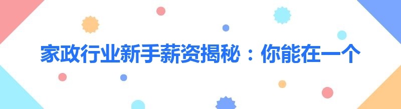 家政行业新手薪资揭秘:你能在一个月内挣到多少钱?