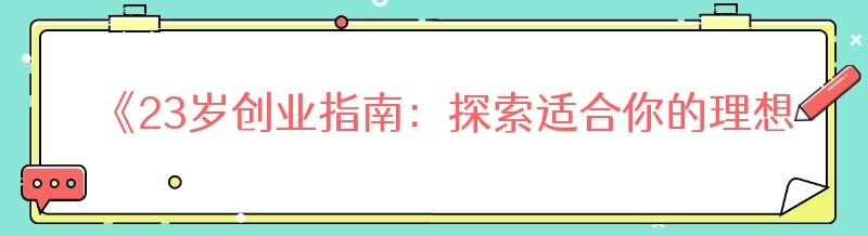 《23岁创业指南:探索适合你的理想之路》