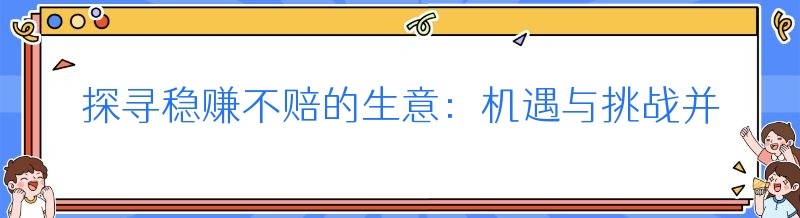 总之,虽然不存在绝对稳赚不赔的生意,但通过选择合适的行业、了解市场需求、掌握核心技术和经营管理经验等方式,可以降低创业风险,提高成功的可能性。希望本文能够为正在寻找创业机会的人们提供一些参考和启示。